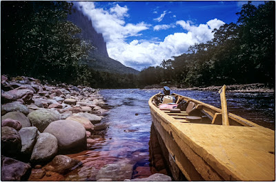We made our way up river by various boats. This was mountain jungle but it was by no means unvisited. Taking people to visit Angel Falls was a thriving business. In some parts of the river, where it was wider and tamer, we traveled in larger boats.
